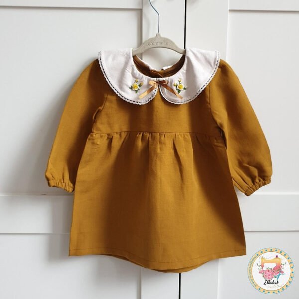 Kleid mit Kragen und Stickereien in senfgelb
