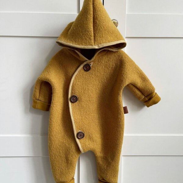 Walkoverall aus 100% Wolle wirkt wärmeregulierend, ist atmungsaktiv und luftdurchlässig, schütz aber vor Wind und Kälte. Der Overall ist großzügig geschnitten und wächst durch die Mitwachsbündchen auch noch einige Zeit mit. *einlagig genäht mit Kapuze *Holzknöpfe *ist ideal zur Übergangszeit, und im Winter Der Overall ist von innen nicht gefüttert. Dies ist auch nicht weiter nötig, wenn z.B. die normale Bekleidung darunter getragen wird. Pflege und Reinigung: Schurwolle ist ein Naturmaterial und hat eine selbstreinigende Wirkung – Meist reicht ausklopfen oder das Ausbürsten mit der Wunderbürste und in frischer Nachtluft auslüften oder mit einem feuchten Tuch reinigen.
