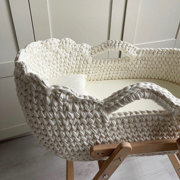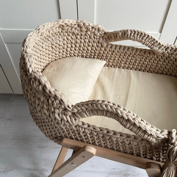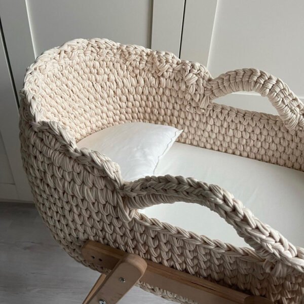 100% Handmade Moseskorb in Creme inkl. Kissen und Matratze